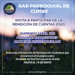 Presupuesto del GAD Parroquial Cumbe año 2020 Vialidad